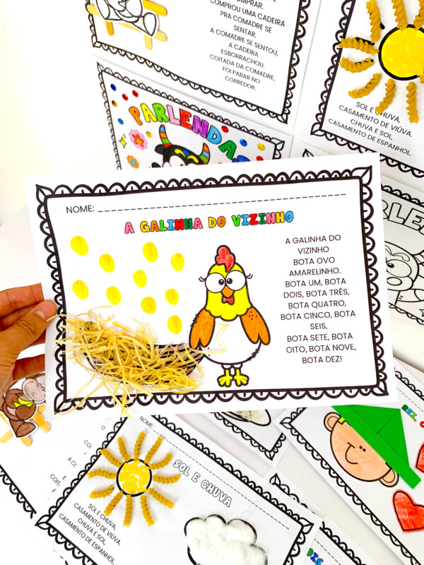 São 5 propostas de atividades criativas que exploram o universo das parlendas de forma lúdica e funcional — com recorte, colagem, pintura, dobradura e muito mais.