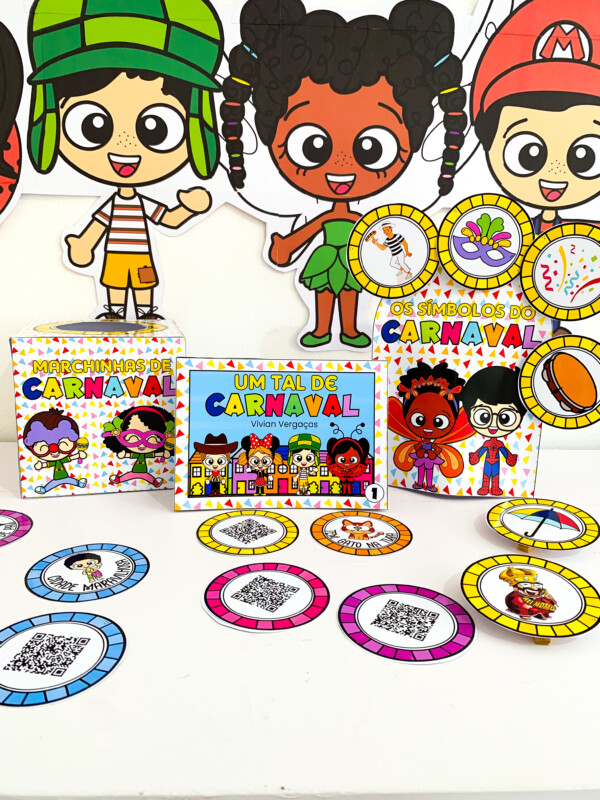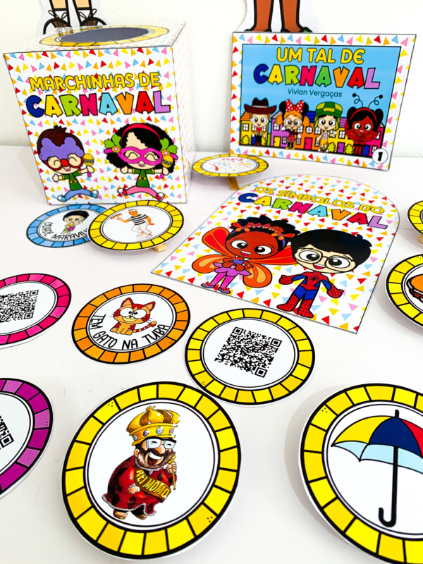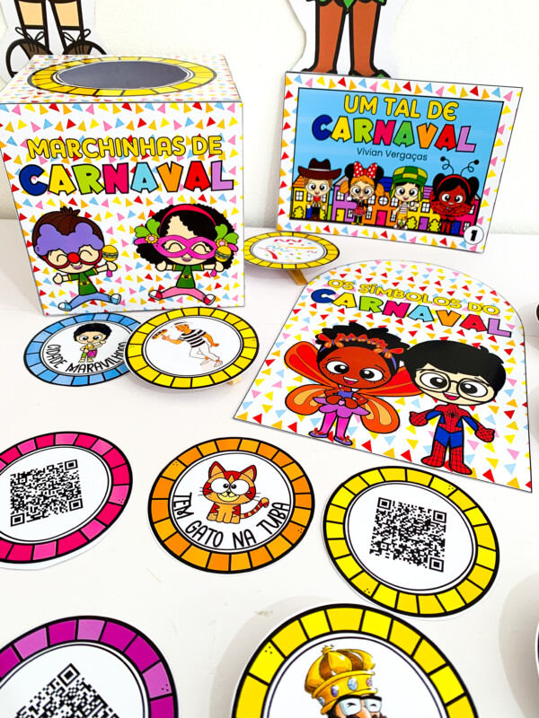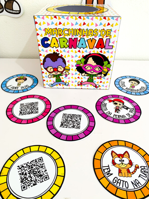 🎶 Caixa Marchinhas de Carnaval com fichas ilustradas + QR Code para acessar as músicas e cantar junto