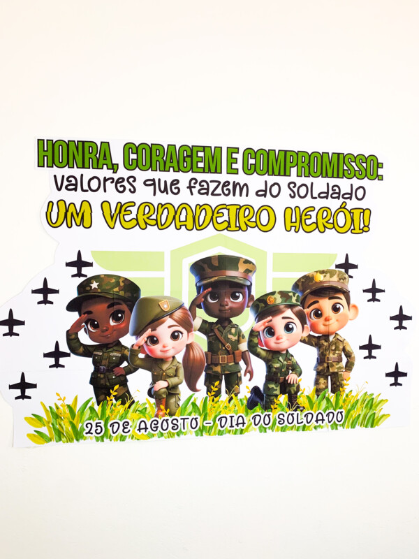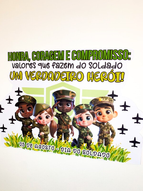 Neste painel, o soldado deixa de ser apenas um personagem de farda e se torna uma ponte para trabalhar valores que marcam — dentro e fora da sala.